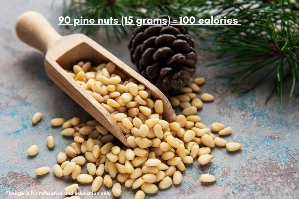 A surprisingly large pile of about 90 pine nuts — around 15 grams — hits the 100-calorie mark, making them one of the most visually impressive entries on this list. Small but mighty, these delicate little seeds are the secret ingredient in traditional pesto and a rich source of manganese and vitamin K.