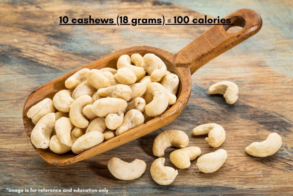 Just 10 cashews — about 18 grams — will get you to 100 calories, making them one of the creamier, more indulgent-feeling nuts at this count. Rich in copper and magnesium, they’re a satisfying option that feels more like a treat than a diet snack.