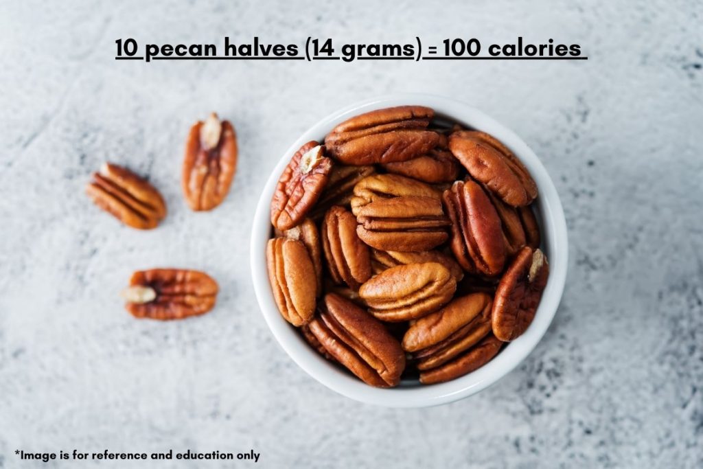 Around 10 pecan halves — approximately 14 grams — comes in right at 100 calories, a deceptively small serving for such a rich, buttery nut. Pecans are among the most calorie-dense nuts, so that handful disappears fast — but the antioxidants and healthy fats make every bite count.