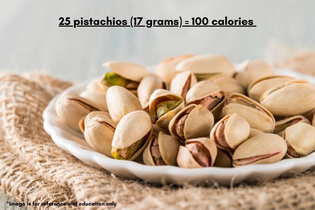 A generous 25 pistachios — about 17 grams — lands right around 100 calories, making them one of the best nuts for sheer volume and snacking satisfaction. Their naturally lower calorie count per nut means you get more to eat, which is why they’re a favorite for mindful snackers.