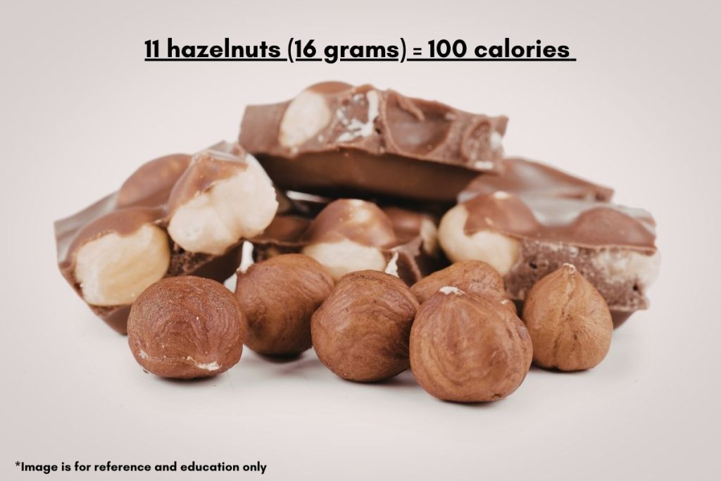 About 11 hazelnuts — approximately 16 grams — comes in at 100 calories, a modest but satisfying little pile that’s as nutritious as it is delicious. Packed with vitamin E and heart-healthy monounsaturated fats, they’re the nut behind your favourite chocolate spreads — just in a much more wholesome form.