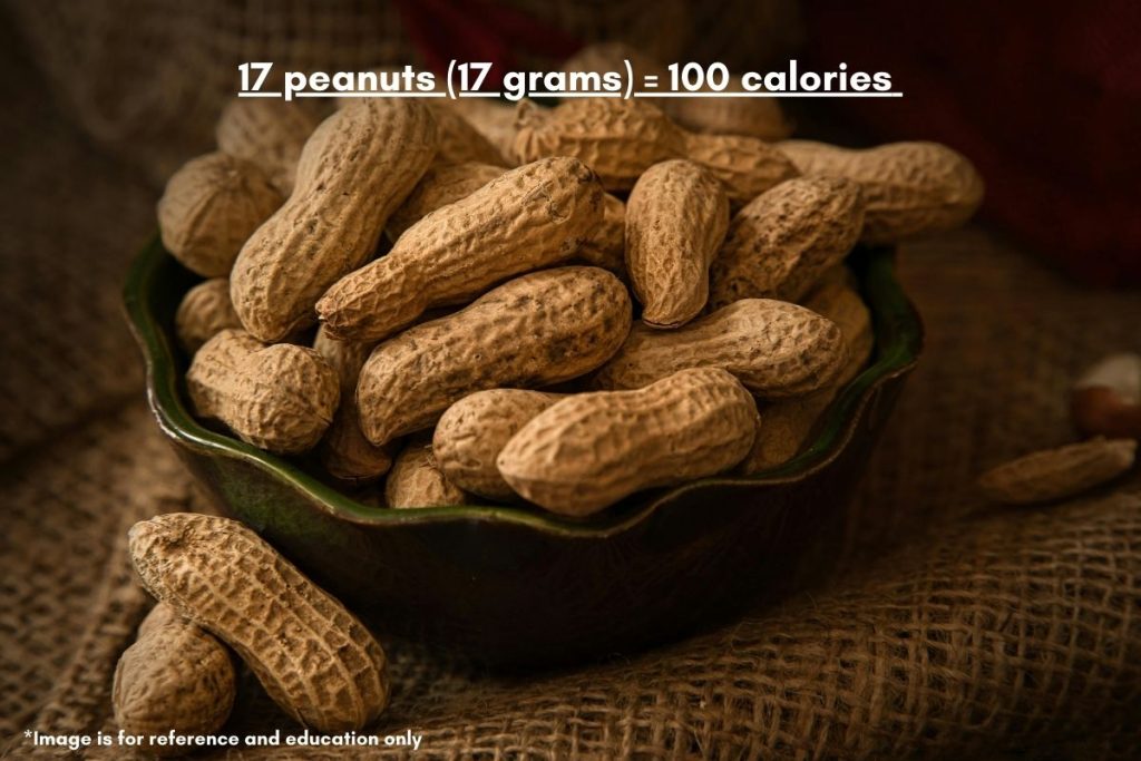 Around 17 peanuts — roughly 17 grams — gets you to 100 calories, one of the more generous counts for a nut at this number. Technically a legume, peanuts are treated like nuts in virtually every kitchen and snack aisle — and with good reason, given their high protein content and satisfying crunch.